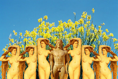 I use data that I love as from the classical art, the orientalists and Pre-Raphaelite painters, and finally and above all I am inspired by surrealism which is ubiquitous, but where necessary I don’t avoid the classic presentation. The incorporated elements of folk art in the films of the great Georgian director Sergei Parajanov fascinates me and in many panels influences my aesthetics. The collages of the great Greek poet and Nobel prize winner Odysseus Elytis is also another source of my inspiration.